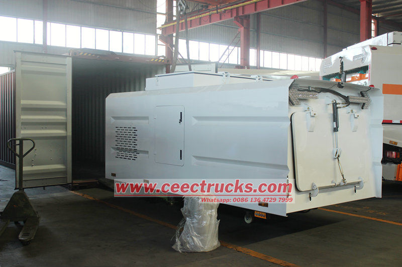 Kit bodi atas truk penyapu jalan 10 cbm (juga disebut superstruktur truk penyapu jalan, kit bodi atas kendaraan penyapu, bodi atas kendaraan pembersih jalan, bodi atas truk pembersih jalan, superstruktur kendaraan penyapu jalan, kit bodi atas truk penyapu sapu) adalah jenis mesin penyapu jalan tipe vakum yang dipasang pada truk, khusus digunakan dalam pembersihan jalan dan mengumpulkan sampah lalu mengangkutnya ke tempat pengumpulan sampah.