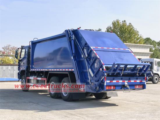 Truk pemadat sampah Howo 6x4 20 cbm dimodifikasi berdasarkan sasis Sinotruk Howo NX 6x4, dengan jarak sumbu roda 4600+1350mm. Truk ini dilengkapi dengan mesin Sinotruk WD615.47, HW19710, dan transmisi 10 kecepatan. Bagian atas bak berupa kontainer sampah terkompresi berbentuk busur dari baja karbon berkapasitas 20 meter kubik dengan perawatan anti korosi dan anti karat, penutup belakang yang sepenuhnya tertutup, dan mekanisme pengangkat bak gantung. Pemuatan dan pembongkaran sampah dikendalikan oleh sistem kontrol elektronik CAN-BUS, khususnya melalui tiga titik kontrol: kotak kontrol elektronik di kabin, tuas pengoperasian hidrolik manual di sisi pengemudi, dan kotak kontrol elektronik di pintu belakang.
