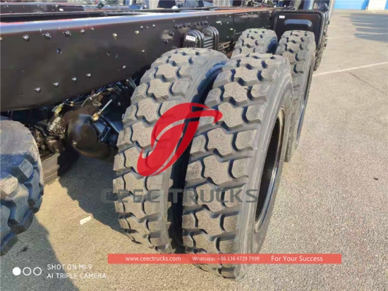sasis truk off road congo beiben 2642 , gandar depan dan belakang berteknologi Benz, mesin diesel merek terkenal weichai 420 hp, transmisi 12JS200T yang sangat andal, jarak sumbu roda 4450+1450 mm, sistem suspensi 4 baut u yang diperkuat tugas berat