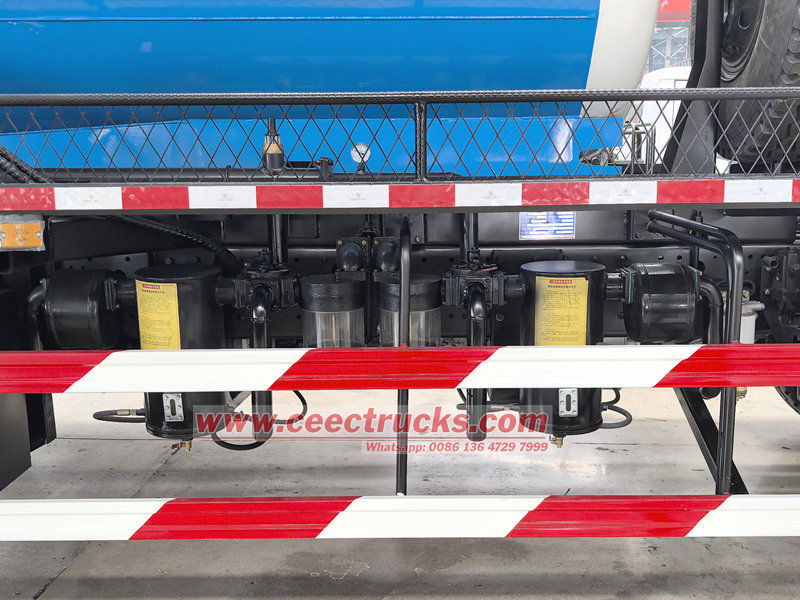Tangki terbuat dari baja berkekuatan tinggi yang telah menjalani perawatan anti-korosi khusus. Tangki ini memiliki ketahanan korosi yang baik dan dapat menahan erosi berbagai kotoran dalam waktu lama, sehingga memperpanjang masa pakai kendaraan. Tangki memiliki struktur yang wajar dan interior yang halus tanpa sudut mati, yang tidak hanya memudahkan pembuangan dan pembersihan kotoran, tetapi juga mengurangi residu kotoran dan menghindari polusi sekunder. Selain itu, tangki dilengkapi dengan berbagai perangkat perlindungan keselamatan, seperti katup anti-luapan, katup pengaman, dll. Ketika tekanan atau level cairan di dalam tangki mencapai nilai yang ditentukan, mekanisme perlindungan akan aktif secara otomatis untuk memastikan keamanan pengoperasian.