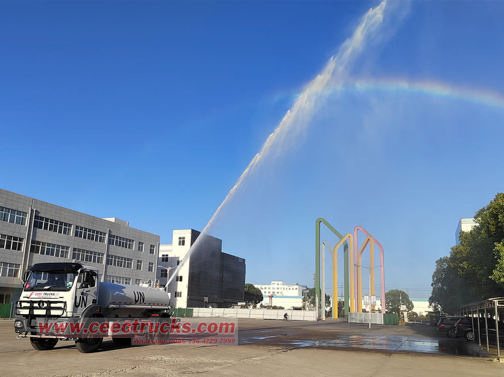 Truk pengangkut air off-road Beiben RHD 4x4 290hpadalah kendaraan khusus multifungsi yang didedikasikan untuk pembersihan jalan, pengurangan dan pendinginan debu, penghijauan irigasi, dan pemadaman kebakaran darurat. Kendaraan ini terdiri dari sasis, tangki air, sistem pompa air, alat penyemprot, dan sistem kontrol. Kapasitas tangki adalah 8cbm, dan materialnya adalah baja karbon, yang memiliki karakteristik anti-korosi dan tahan lama.
