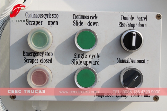 ** Alarm belakang dan Kamera dapat dilengkapi. ** Katup mulit Italia dapat dipilih. ** Tempat sampah 240L (tempat sampah tunggal atau tempat sampah ganda) atau tempat sampah standar 660 L, 1100 L dengan pengangkat tempat sampah dapat dipilih. |