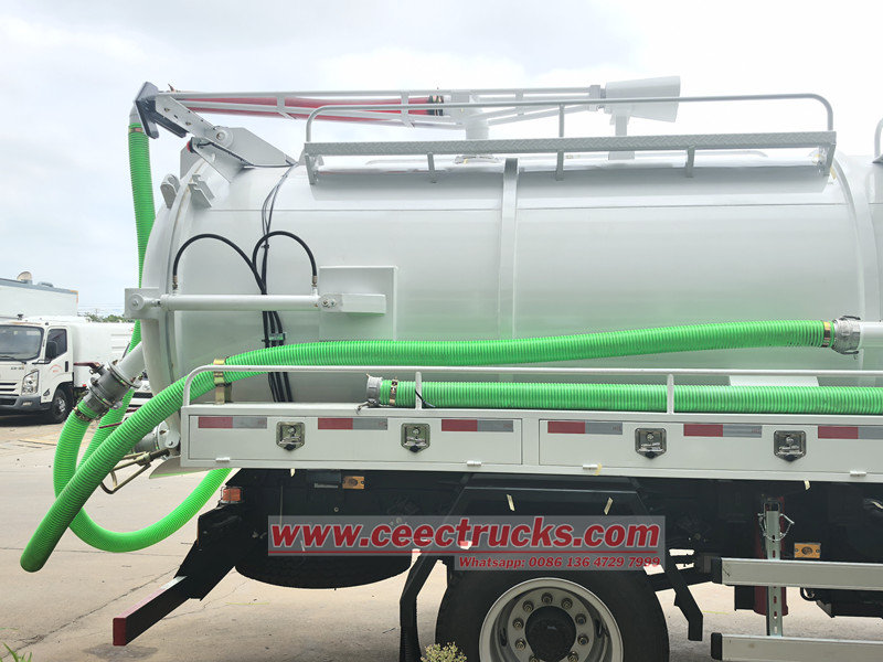 Truk septik poros tunggal Howo berkapasitas 5.000 liter (disebut juga truk pompa hisap vakum Howo 5cbm, truk tangki vakum Howo 5.000 liter, truk pompa tangki septik Howo 4x2, truk tangki pompa septik Howo 6 roda, truk hisap limbah vakum Howo.) Digunakan untuk menampung, mengangkut, dan membuang cairan seperti air kotor, lumpur, dan septik. Badan tangki telah dilapisi dengan lapisan anti-korosi dan anti-karat sehingga sangat tahan lama. Dikombinasikan dengan pompa vakum berdaya tinggi, tangki ini memiliki daya hisap yang kuat dan merupakan peralatan profesional yang sangat diperlukan dalam tata kelola lingkungan perkotaan dan pedesaan.