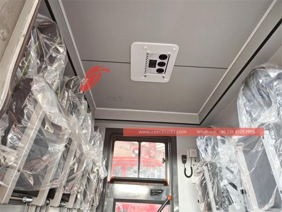 Panel operasi pompa air dalam bahasa Inggris, spatbor harus berwarna hitam, dengan lampu alarm, tangga yang dapat dilepas, kotak peralatan belakang bodi di bawah arah kemiringan ke atas sekitar 45 derajat, semua antarmuka kendaraan dan aksesori adalah Inggris, dengan gulungan selang bertekanan tinggi hitam sepanjang 30m |