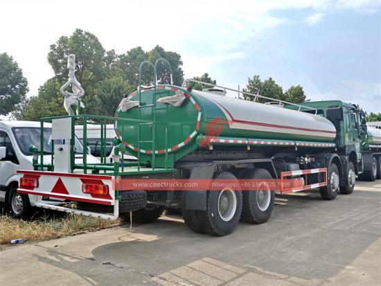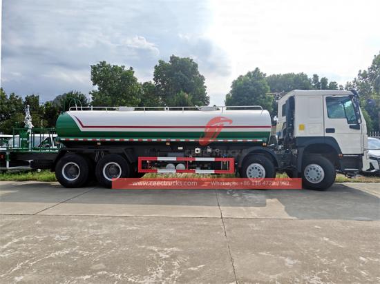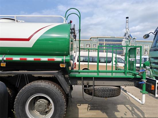 Dengan tangki air yang besar dan material berkualitas tinggi, truk penyiram air Howo memiliki kapasitas tangki lebih dari 20.000 liter, memenuhi kebutuhan operasi penyemprotan air skala besar, mengurangi frekuensi pengisian ulang, dan meningkatkan efisiensi operasional. Tangki air terbuat dari baja karbon berkualitas tinggi (Q235) dan dibuat menjadi badan tangki berbentuk oval. Keunggulannya antara lain kekuatan tinggi dan ketahanan korosi, sehingga memastikan masa pakai tangki air yang panjang.