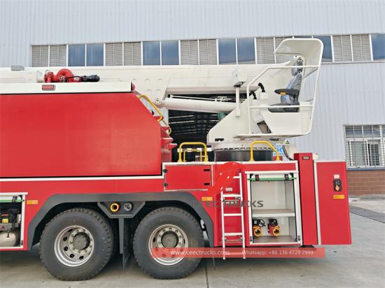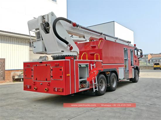 8000L water tank and 2000L foam tankHowo water & foam dengan turret yang dapat diperpanjang dan jangkauan tinggi, boom, dan komponen struktural terkait lainnya dibuat dengan memanfaatkan sepenuhnya teknologi manufaktur canggih milik perusahaan kami, yang efisien dan andal, serta mewakili tingkat lanjutan internasional. Howo high-lift fire memiliki struktur yang ringkas, ukuran kecil, penyesuaian operasional yang besar, pengoperasian yang fleksibel, serta memiliki fungsi penyelamatan dan pemadaman kebakaran di ketinggian tinggi dan rendah. Ini adalah peralatan pemadam kebakaran multifungsi yang mengintegrasikan truk pemadam kebakaran penyelamat, truk pemadam kebakaran jet bertingkat tinggi, dan fungsi lainnya.