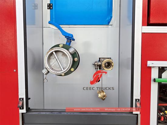 Pipa sistem proteksi kebakaran adalah pipa baja tahan karat + pipa paduan aluminium. Pipa air mencapai kendaraan bagian atas melalui badan putar pusat, yang dapat memenuhi kebutuhan pasokan air atau busa. Ada meriam air yang dikendalikan dari jarak jauh secara elektrik di kepala lengan atas, yang dapat mengubah bentuk aliran air (lurus dan percikan air), dan dapat menyemprotkan air atau busa. Ada saluran masuk air di bagian bawah kendaraan untuk memenuhi persyaratan pemadaman api aliran besar pada gedung-gedung tinggi.