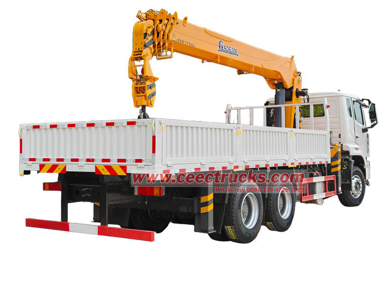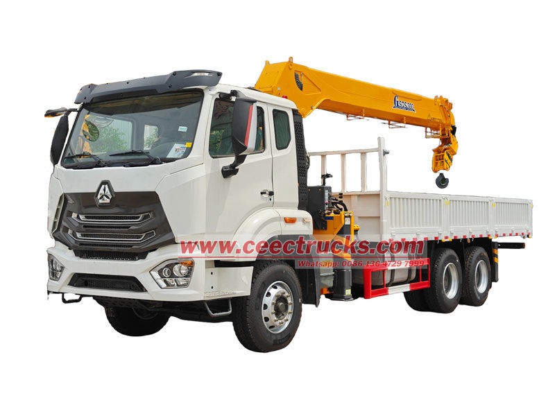 Truk Howo dengan daya angkat derek 12 ton yang diproduksi oleh CEEC cocok untuk konstruksi, logistik, infrastruktur, pertambangan, dan bidang lainnya. Kendaraan ini dimodifikasi pada sasis HOWO NX, jarak sumbu roda 4600+1400 mm. Dilengkapi dengan mesin WEICHAI WP10.380E22 380HP dan kotak roda gigi HW19710 10 kecepatan. Bagian atas adalah kotak kargo berukuran 6500×2300×450 mm dan derek XCMG GSQS300, yang dapat mengangkat 12 ton. Derek dapat dioperasikan dengan tuas hidrolik manual di kedua sisi untuk mengontrol retraksi dan ekstensi outrigger serta retraksi dan rotasi derek.