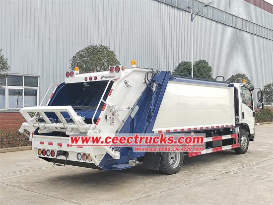 Truk sampah pemuat belakang Isuzu NPR <3CEEC adalah kendaraan kota yang digunakan untuk pengumpulan sampah, yang dimodifikasi pada sasis Isuzu 700P, dengan jarak sumbu roda 4175mm, mesin diesel bertenaga Isuzu 4HK1-TCG61 190HP, Isuzu MLD 6 shift gearbox, dengan A/C,USB, bantuan arah, kendaraan memiliki 10cbm kapasitas sampah yang besar untuk pengumpulan sampah.