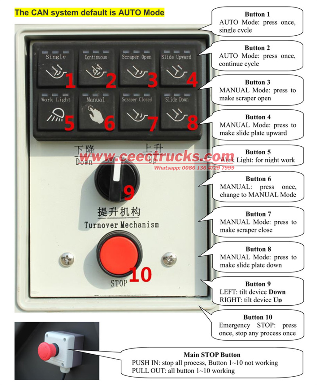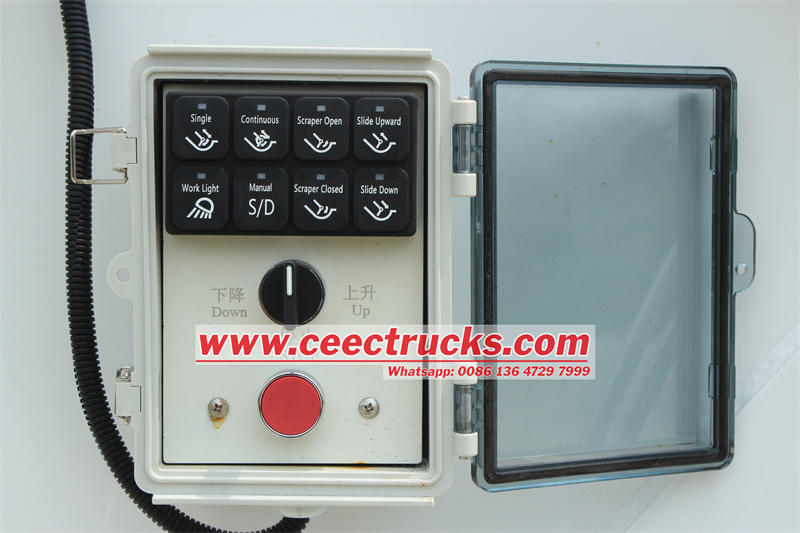 9 Untuk truk sampah yang dilengkapi dengan motor eksternal sebagai sistem daya, durasi penutupan scraper disesuaikan sesuai dengan laju aliran sistem Saat bekerja melalui menerapkan mesin sasis, durasi penutupan scraper lebih pendek dari sistem daya motor, dan normal bahwa scraper berhenti sebentar ketika scraper terbuka dan ditutup