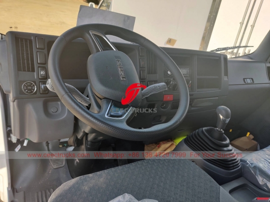 Truk boks berpendingin ISUZU ELF, sasis model penggerak tangan kiri ISUZU 4Ã2, gearbox manual 5-shift MSB, mesin ISUZU 98HP. Dilengkapi dengan unit pendingin terkenal China untuk kinerja tinggi, sedangkan untuk kapasitas van bisa opsional 3-25T.