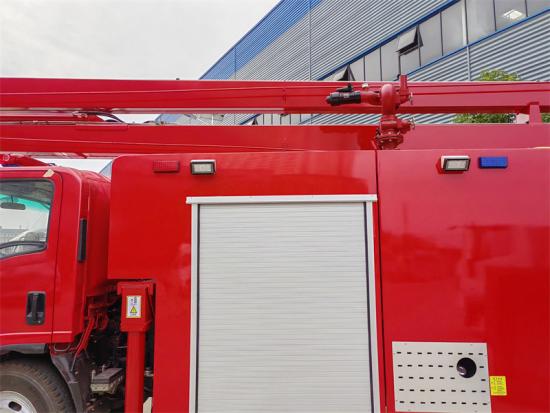 Truk Manlifter Isuzu dengan Mesin Pemadam Kebakaran Dilengkapi dengan Tanker Air Baja Karbon 3000L, Sistem Pompa Pemadam Kebakaran yang Dipasang di Ruang Depan CB10/40, juga dipasang di atas dengan Monitor Kebakaran PS40, yang dapat membuat truk yang menyorotkan disace air lebih dari 55m, semua alat pemadam kebakaran yang diperlukan dilengkapi untuk membuat truk cocok untuk pekerjaan pemadam api