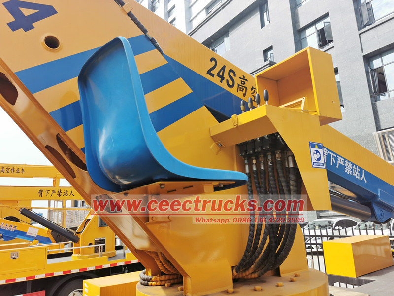 Truk CEEC Aerial Lift Truck Struktur keseluruhan terbuat dari pelat baja berkekuatan tinggi, yang aman dan dapat diandalkan Ini dilengkapi dengan outrigger hidrolik yang dapat disesuaikan, dengan rentang besar dan lebih stabil; dilengkapi dengan kontrol manual, kontrol listrik, kendali jarak jauh dan mode operasi lainnya, nyaman dan cepat; Ini juga memiliki interlock, perlindungan retret lunak, batas otomatis tinggi kerja di lingkungan berbahaya dan sistem darurat otomatis untuk melindungi keselamatan dan keselamatan konstruksi personel