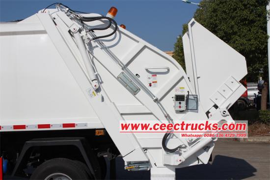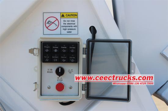 Kotak kontrol elektronik kabin mengintegrasikan berbagai tombol fungsi, termasuk Stop & Start, lepas landas daya, lampu kerja, bak truk ke atas/bawah, mode pemuatan, mode pelepasan, dorongan/tarik sekop, dll Kotak kontrol elektronik dapat mewujudkan operasi otomatis truk sampah, seperti pengendara yang cepat untuk mengontrol dengan cepat, mengontrol kendaraan