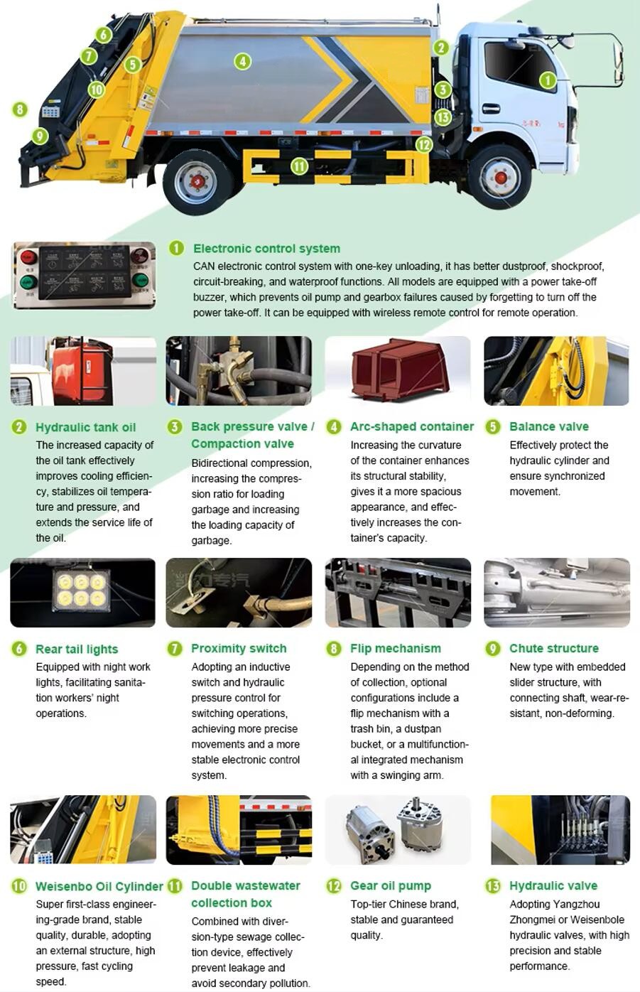 Truk pemadat limbah isuzu nkr adalah kendaraan sanitasi baru yang mengumpulkan, mentransfer, dan mengangkut sampah untuk menghindari polusi sekunder Tailgate belakang pemadat sampah digunakan untuk terhubung dengan tempat sampah atau ember sampah, dan bersama-sama mereka digabungkan menjadi stasiun transfer sampah mobile untuk mewujudkan daur ulang bebas polusi dan transportasi beberapa ember sampah di satu kendaraan Tailgate dilengkapi dengan mekanisme flip, dengan mode operasi elektronik dan manual Kotak kontrol dipasang di kabin dan bagian belakang bak belakang Ada strip penyegelan karet setebal 3 mm di bagian belakang dan tangki limbah berkapasitas besar Kendaraan dapat dicetak dengan pola dan teks sesuai dengan kebutuhan pelanggan