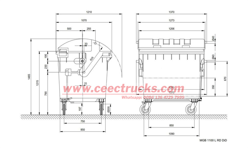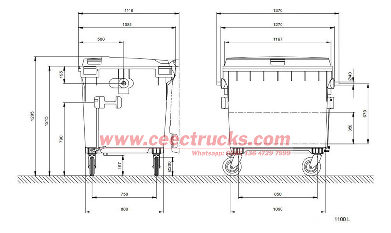 | Depan | Sekitar 230L, di bagian depan van sampah | |