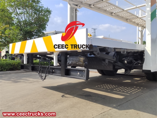 Pengangkut mobil memiliki struktur platform pemuatan dua lapis, dan platform pemuatan atas dapat diangkat ke atas dan ke bawah di bawah aksi alat pengangkat untuk memfasilitasi pemuatan.