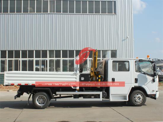 Equipped with XCMG loader craneItu Truk kargo Isuzu ELF 190HP yang dipasangi derek adalah truk yang kuat dan dirancang dengan baik dengan keunggulan absolut dalam operasi transportasi dan pengangkatan. Truk derek Isuzu dilengkapi dengan mesin diesel merek ISUZU dengan daya yang kuat sebesar 190HP, yang dapat memenuhi kebutuhan kerja cepat. Kabin baris ganda dapat menampung 5 orang dan dilengkapi dengan AC, memberikan lingkungan berkendara yang nyaman bagi pengemudi dan staf. Bagian atas truk derek kabin ganda Isuzu NPR dilengkapi dengan derek lengan lipat dengan kapasitas angkat maksimum 5 ton, tinggi angkat maksimum 11m, dan rotasi penuh 520°. Derek berbobot 950kg dan memiliki ruang pemasangan 850mm. Pada saat yang sama, kotak memiliki fungsi bongkar muat sendiri, dan panel kontrol dapat memilih bahasa Inggris atau bahasa lain, yang nyaman bagi pengguna dengan kebutuhan yang berbeda. Truk derek kargo Isuzu NPR juga menyediakan berbagai konfigurasi opsional, seperti boom teleskopik, boom grab, kotak kargo terpal, ketebalan dan tinggi kotak yang dapat disesuaikan sesuai kebutuhan, dan kotak kontrol operasi jarak jauh.