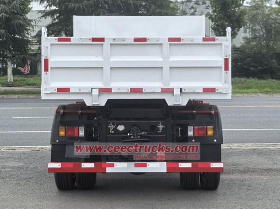 Kompartemen kargo terbuat dari baja karbon berkualitas tinggi dan struktur genteng baja, dengan panjang 4,2 m, lebar 2,2 m, tinggi 0,55 m, dan kapasitas beban terukur 5-6 ton, memenuhi kebutuhan transportasi material skala besar. Sistem pengangkat hidraulik mendukung pembongkaran dengan kemiringan belakang, dengan sudut pengangkatan lebih dari 60°. Dikombinasikan dengan desain pusat gravitasi rendah, sistem ini memastikan proses pembongkaran yang stabil dan efisien, dan siklus operasi tunggal dipersingkat 20% dibandingkan model tradisional.
