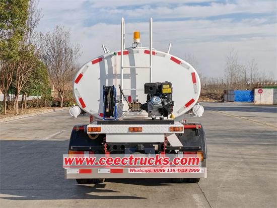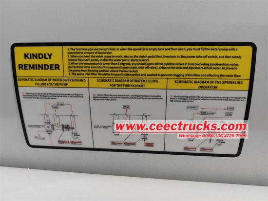 Untuk operasi sprinkling, truk ini dilengkapi dengan tangki air karbon elips dengan kapasitas hingga 5000L Desain ini tidak hanya meningkatkan kapasitas penyimpanan air tetapi juga membuat struktur tangki lebih kompak, memfasilitasi kemampuan manuver gesit truk di jalan -jalan perkotaan yang sempit Selain itu, penggabungan pompa air 65QZF-40/50 memberikan truk penyiram air dengan tekanan air yang kuat dan aliran yang stabil, memastikan efisiensi dan keseragaman operasi taburan