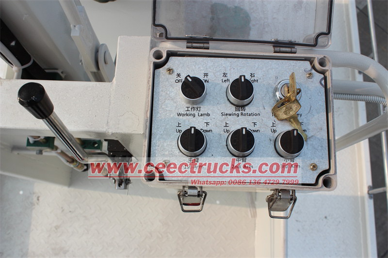 Truk CEEC 4X2 ISUZU GIGA 6UZ1 ENGINE 380HP Aerial Lift Truck diproduksi berdasarkan sasis truk Isuzu Jepang asli, Giga 4x2 LHD 20M Kendaraan Kerja Aerial Tinggi Kerja Tinggi Kerja Pasar Filipina The newly designed 20-22 meters high-altitude operating vehicle adopts a folding crank arm structure, the operating arm is three-section folding, the working bucket and the turntable have double working positions, up and down operation, electro-hydraulic control, 360-degree rotation, four hydraulic outriggers, inside the working bucket It can control the start and stop of the engine, the boom has a hoisting hook system, the hook lifting weight is ≤900kg, ember kerja berawak adalah 250kg, kotak alat baja dan platform anti-selip pola, dan pagar stainless steel ''