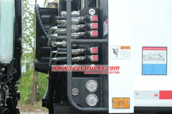 —— Sistem Hidrolik: Ini terdiri dari tangki bahan bakar, pompa oli, katup multi-jalan, silinder hidrolik, pipa, dll Tekanan hidrolik biasanya diatur ke 16MPA, dan daya diperoleh dari mesin melalui lepas landas daya untuk menggerakkan pemuatan dan pembongkaran, kompresi, pengangkatan dan tindakan lainnya