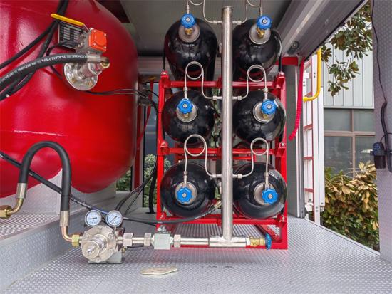 Customized dry chemical system with Nitrogen tankerIni adalah truk pemadam kebakaran nitrogen bubuk kering yang dibuat di atas Sasis ISUZU. Truk ini dilengkapi dengan mesin ISUZU 6UZ1-TCG61 yang bertenaga dengan kapasitas 9.839L dan daya keluaran 380 HP Ini mengadopsi 4 X 2 mode berkendara dan dilengkapi dengan gearbox 12 kecepatan. Kecepatan maksimumnya bisa mencapai 90 km/jam, yang dapat beradaptasi dengan berbagai kondisi jalan yang kompleks. Dalam hal sistem proteksi kebakaran, kendaraan ini dilengkapi dengan 700kg tangki penyimpanan bubuk kering baja karbon dan 6 unit Tabung nitrogen 80 liter dengan tekanan desain 15MPa. Pompa pemadam kebakaran digerakkan oleh PTO, dengan rentang tekanan 1,6-2,5 MPa dan laju aliran 80-120 kg/s. Meriam pemadam kebakaran memiliki kecepatan semprot 60-100 kg/s dan jangkauan 40-60 meter, yang dapat secara efektif menanggapi berbagai situasi kebakaran. Kendaraan ini juga dilengkapi dengan seperangkat lengkap peralatan penyelamatan kebakaran standar, seperti sekop, linggis, kapak, dan peralatan pemotong, serta tangga dan lampu sorot sebagai pilihan.