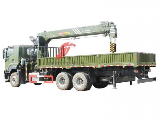 Isuzu ini GIGA 6x4 truk bergerak dipasang 14ton derek adalah truk yang kuat dan dirancang dengan baik. Truk ini dilengkapi dengan mesin ISUZU 6UZ1 mesin diesel dengan tenaga yang besar 380 HP, yang dapat memenuhi berbagai kebutuhan kerja. Kabin dapat menampung tiga orang dan dilengkapi dengan AC, memberikan lingkungan berkendara yang nyaman bagi pengemudi. Bagian atas Isuzu GIGA 14 Truk derek kargo ton dilengkapi dengan derek boom teleskopik dengan kapasitas angkat maksimum 120 00kg dan rotasi 360° penuh.