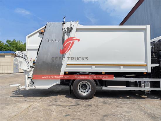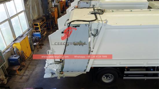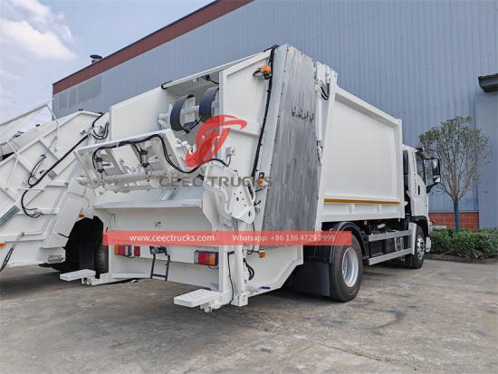 Inti dari pemuat sampah belakang adalah mekanisme kompresi (seperti scraper dan pelat geser) untuk memadatkan sampah lepas. Truk pemadat sampah Isuzu GIGA F-serius 16CBM biasanya bergerak bolak-balik dari belakang ke depan boks.