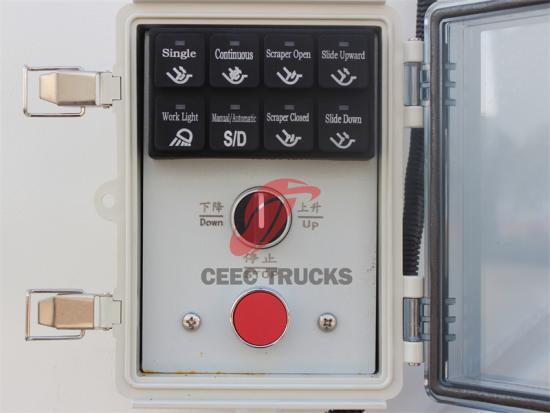 Truk Pemadat Sampah Isuzu FVR GIGA tidak hanya berkinerja baik dalam hal tenaga, transmisi, volume tempat sampah, efisiensi kompresi, dll., namun sistem kontrolnya yang canggih menjadikan model ini unik di bidang pembuangan sampah perkotaan. Berikut ini akan diperkenalkan secara detail komponen-komponen kendali utama truk sampah ini, seperti Kotak Kontrol Elektrik (Di dalam kabin), Joystick Kontrol Hidraulik (Di sisi berkendara), Kotak Kontrol Elektrik (Di pintu belakang), dan Kotak Kontrol Manual (Di pintu belakang) .