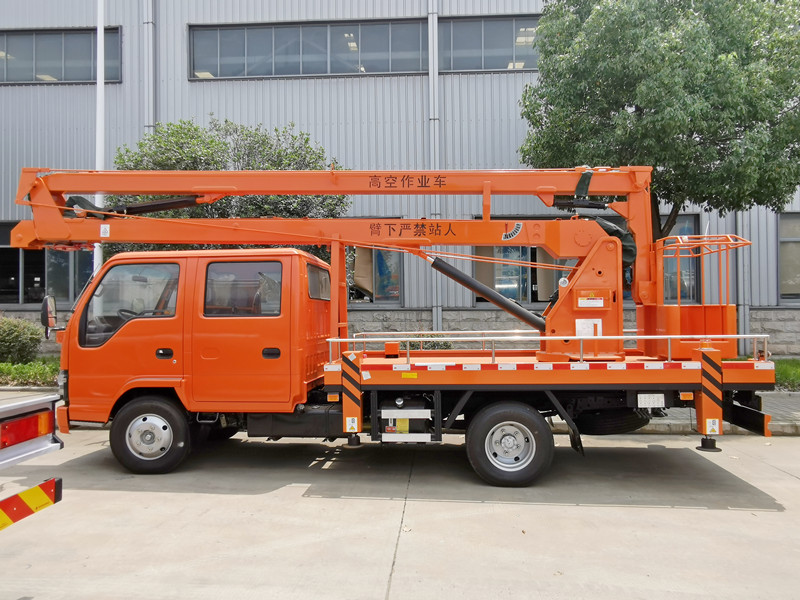 Customized insulated bucket for 220V 230V operationIsuzu Double Cabin 16m Aerial Work Platform Truck juga disebut Isuzu 600p lipat truk kerja udara lengan dengan keranjang pria 16 meter, yang merupakan kendaraan khusus untuk pekerjaan udara yang dimodifikasi berdasarkan sasis truk NKR Isuzu 600p Jepang Double Cabin Row dengan 4 pintu dan tersedia untuk 1 pengemudi dan 4 penumpang, dilengkapi dengan mesin diesel 4kh1cn6lb 88kW/120hp dan emisi dapat 2999ml, msb 5 shift manual gearbox dengan 5 forward dan 1 terbalik kembali, standar 7 00R16 Tubelss Tubels termasuk satu ban cadangan Truk Manlift Isuzu dengan cFitur bijih adalah struktur lengan lipat, dengan ketinggian operasi maksimum hingga 16 meter, Ini mengadopsi desain lengan lipat tiga bagian, mendukung rotasi penuh 360 °, dan jari-jari operasi dapat mencapai 7-7 5 meter Platform peringkat beban biasanya 200 kg dan dapat membawa 2 orang HAIPTional untuk dilengkapi dengan bahan stainless steel atau keranjang manusia baja karbon untuk kerja yang tahan lama, juga opsional untuk dilengkapi dengan bahan fiberglass, keranjang manusia untuk bekerja di bawah tegangan 220V, 230V, 260V, 330V dll Cocok untuk berbagai skenario kerja udara