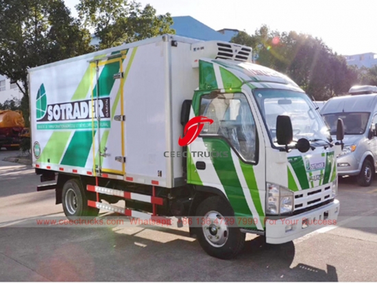 Truk berpendingin ISUZU 4 ton, sasis model penggerak tangan kiri ISUZU 4Ã2, gearbox manual 5-shift MSB, mesin ISUZU 98HP. Dilengkapi dengan unit pendingin America THERMO KING untuk kinerja tinggi, sedangkan untuk kapasitas van dapat opsional 3-25T.