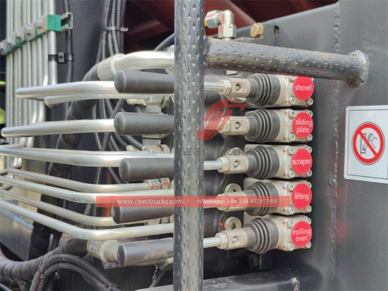 ** Alarm belakang dan Kamera dapat dilengkapi. ** Katup mulit Italia dapat dipilih. ** Tempat sampah 240L (tempat sampah tunggal atau tempat sampah ganda) atau tempat sampah standar 660 L, 1100 L dengan pengangkat tempat sampah dapat dipilih. |