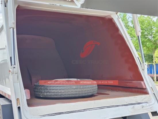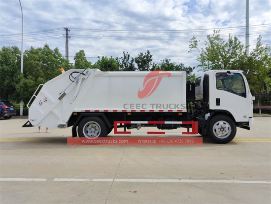 Truk pemadat sampah ISUZU 8cbm, sasis truk menggunakan mesin diesel ISUZU 190HP, gigi transmisi MLD 6 shift. Kotak kontrol PLC untuk pengoperasian yang mudah. Semua lukisan dan logo berdasarkan kebutuhan klien.