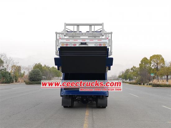 Dalam hal desain tubuh, kendaraan menggunakan tempat sampah 10cbm, dan desain berkapasitas besar meningkatkan efisiensi pengumpulan sampah Bagian belakang tempat sampah dilengkapi dengan mekanisme yang memutar ember, yang memfasilitasi pengangkatan otomatis tempat sampah ke dalam tubuh mobil, menyadari pemuatan mekanis sampah Dalam hal operasi, kendaraan menyediakan 4 metode operasi, yang dapat secara fleksibel mengatasi berbagai skenario operasi dan meningkatkan efisiensi kerja