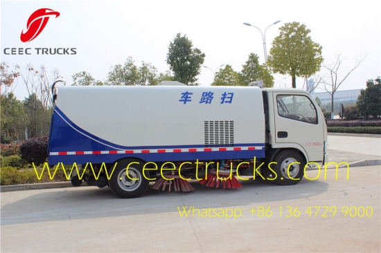 Truk penyapu jalan Dongfeng, mesin Chaoyang 95HP, gearbox manual 5 shift, material baja tahan karat 5CBM dengan tangki debu 4CBM dan tangki air bersih 1CBM, banyak diekspor ke Myanmar, Filipina