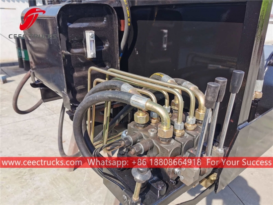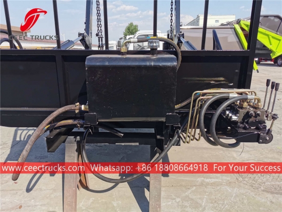 Bodi skip loader 4cbm yang disesuaikan, lengan ayun baja berkekuatan tinggi sistem, perangkat kontrol hidrolik dan kotak kontrol listrik opsional. Semua lukisan dan logo tergantung kebutuhan.