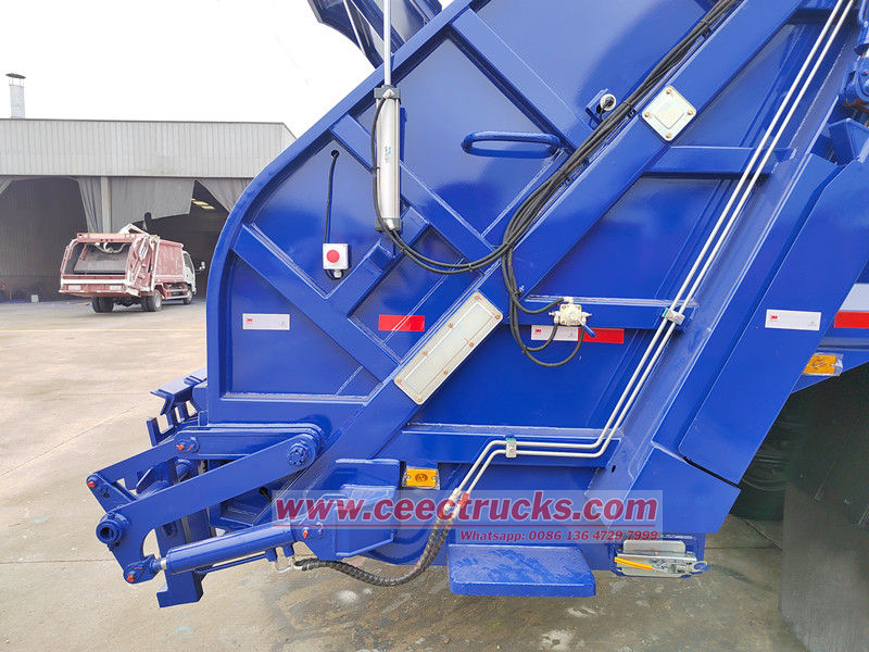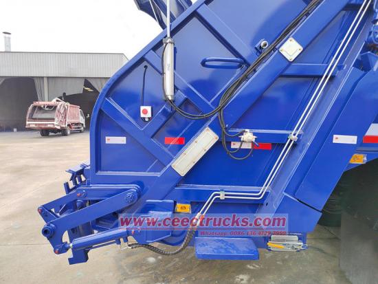 Kendaraan ini dilengkapi sistem penggerak hidrolik penuh, yang memungkinkan operator menyelesaikan seluruh proses pemuatan, pemadatan, dan pembongkaran sampah menggunakan panel kontrol atau kendali jarak jauh nirkabel, sehingga mengurangi intensitas tenaga kerja. Lebih lanjut, kendaraan ini dilengkapi sensor yang memantau kepenuhan kontainer secara real-time, secara otomatis menghentikan pemadatan dan mengeluarkan peringatan untuk mencegah kelebihan muatan. Demi keamanan, pintu belakang dilengkapi mekanisme pengunci hidrolik untuk mencegah kebocoran selama pengangkutan. Sistem rem darurat dan perangkat anti-terguling semakin menjamin keselamatan berkendara.